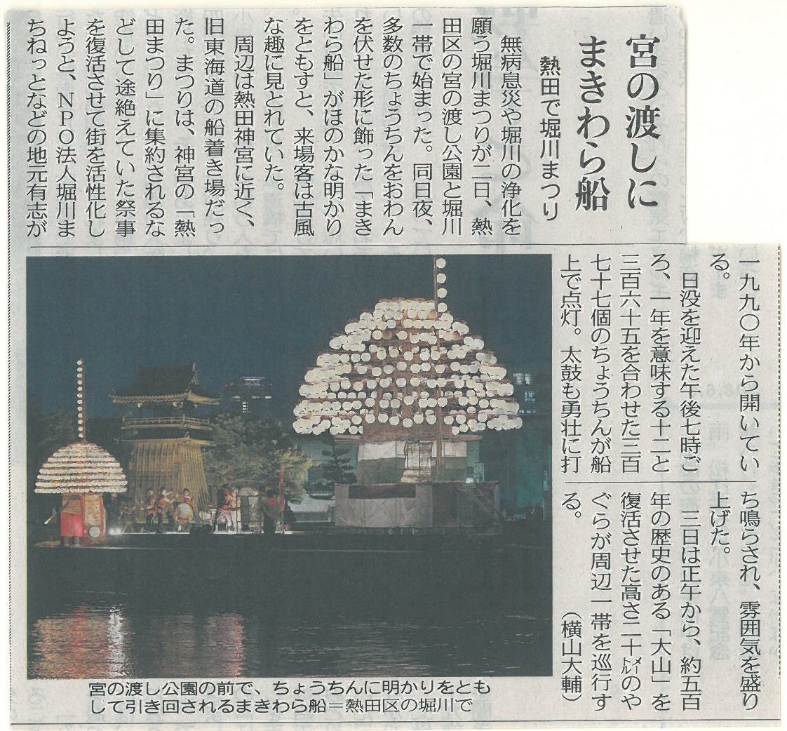 熱田で 堀川まつり 中日新聞記事より